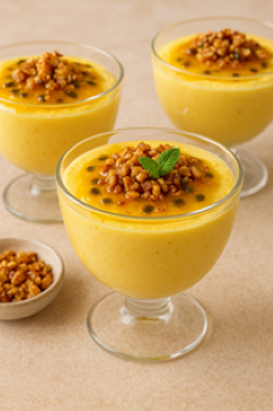 MOUSSE DE MARACUJÁ REFRESCANTE COM CROCANTE DE CASTANHAS