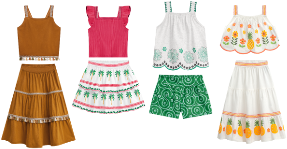 Com um apelo diferente, mas compartilhando os mesmos ideais e valores, as peças exploram aviamentos manuais, babados, modelagens diferenciadas e estampas exclusivas que remetem à fauna e flora, como abacaxis e folhagens tropicais. A cartela de cores passeia entre tons vibrantes, como laranja, verde e amarelo, e os terrosos que estão em alta, permitindo composições que valorizam tanto o frescor infantil quanto a autenticidade nos looks.