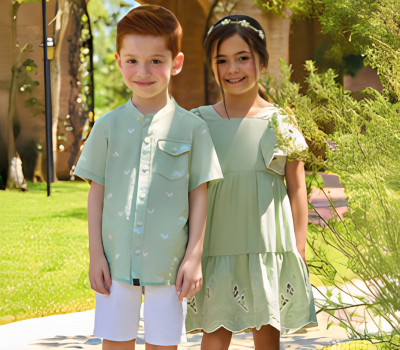 Os meninos ganham destaque com combinações que transbordam estilo e funcionalidade. Conjuntos em tons terrosos e verde aparecem em versões mais clássicas, ideais para eventos formais, com foco na leveza que a estação exige. Já as opções com bermudas e camisas em tecidos leves e cores claras são perfeitas para ocasiões informais, mantendo o conforto e o toque refinado. Camisas de linho, bermudas com cortes modernos e peças em algodão reforçam o compromisso da marca com a qualidade e o bem-estar dos pequenos.