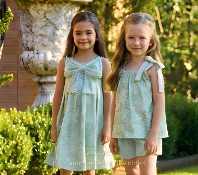 ara as meninas há várias opções de vestidos com barrados bordados, além dos clássicos listrados que coordenam perfeitamente com a temporada. Os tons terrosos, verde e rosa predominam, reforçando o ar romântico da estação. A coleção ainda traz conjuntos com saias mais alongadas, midi e shorts em modelagens modernas, pensadas para proporcionar conforto e liberdade de movimento.