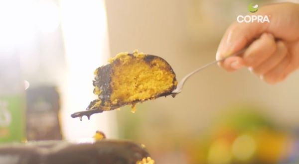 - Despeje em forma untada com manteiga de coco e farinha de arroz;