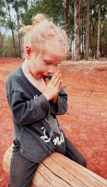 A mãe de Sarah registrou o momento em que a menina agradece a Deus pelo momento